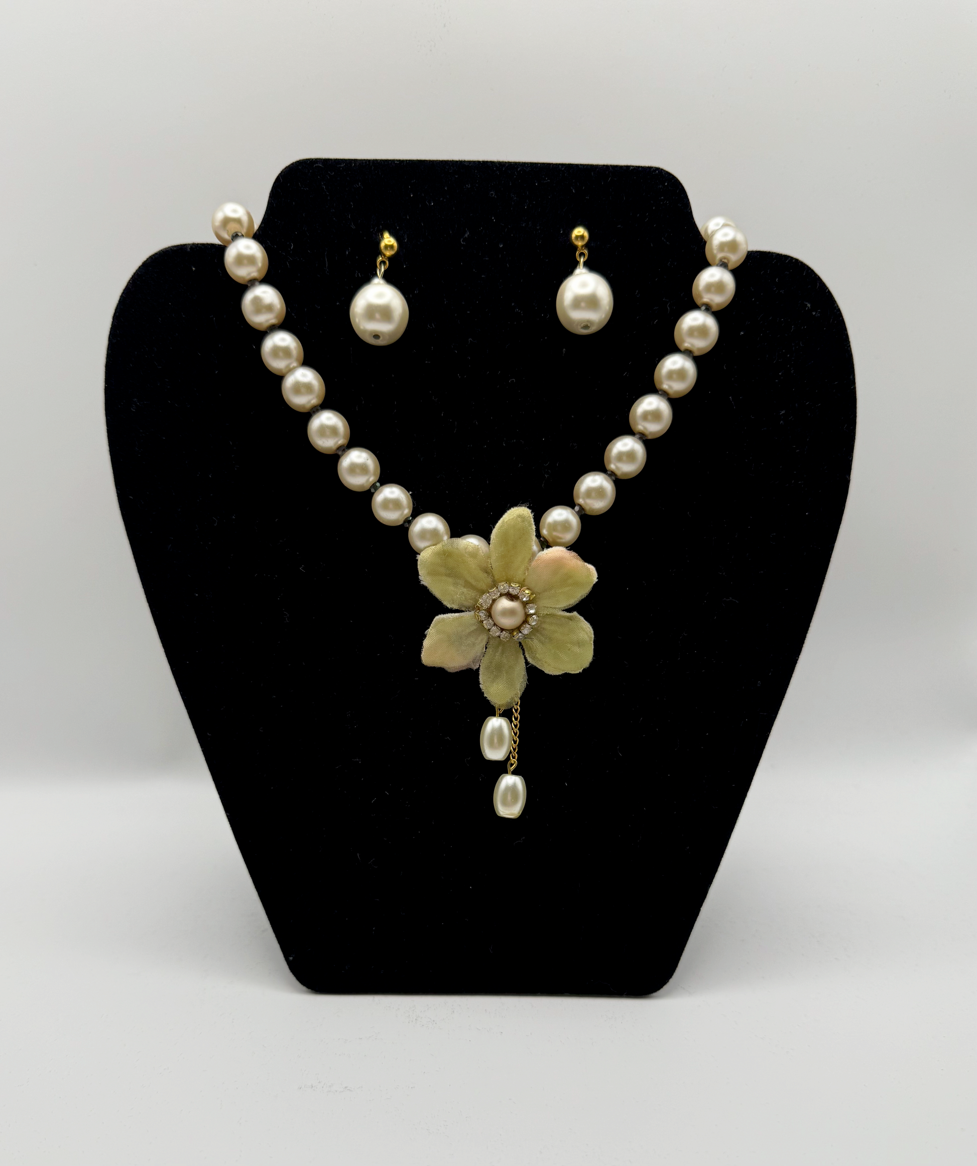 Ivory Blossom Pearl Necklace & Earrings